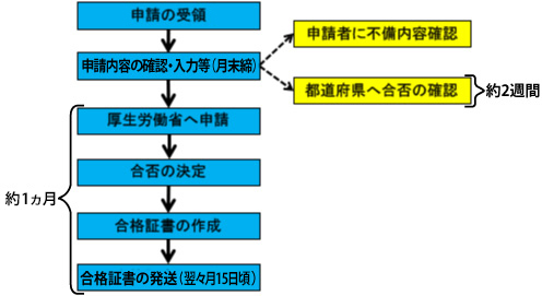 合格証書は末日までに申請内容確認分を翌々月に交付します。